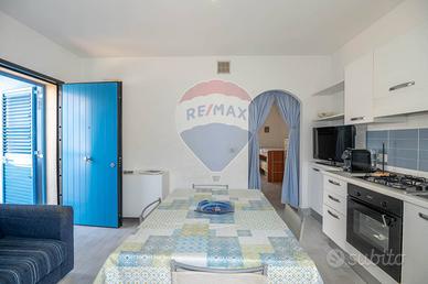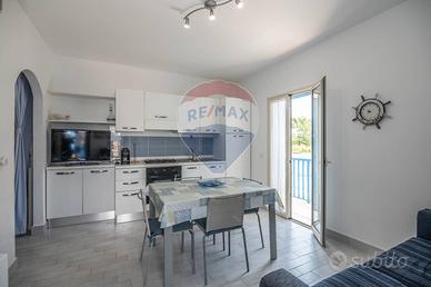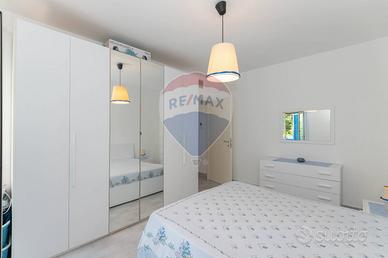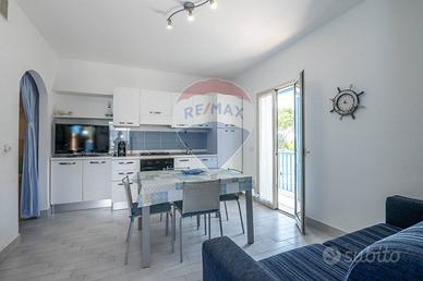L'appartamento viene venduto arredato, con gusto e con mobilifunzionali, perfetti per il contesto marino che lo circonda.La cucina è a vista e si affaccia sul soggiorno, creando un ambiente conviviale e accogliente.