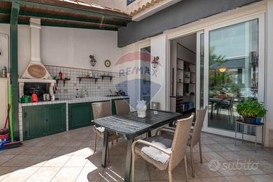 una veranda esterna in parte coperta di circa 30 mq e un cortile/giardino interno di circa 50 mq.