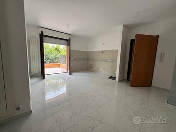 Rif. V-1579 Recanati - Piazzale Menechen In una zona residenziale tranquilla e ben servita di Recanati, precisamente in Piazzale Menechen, proponiamo in vendita un trilocale posto al piano terra di una palazzina moderna edificata nel 2007 e servita da ascensore. L'immobile, recentemente e finemente ristrutturato, si distingue per l'ottima distribuzione degli spazi interni e per l'equilibrio tra comfort moderno e funzionalità. La zona giorno si apre in un accogliente open space luminoso, con living e cucina a vista, che si affaccia su una corte privata pavimentata di circa 45 mq, perfettamente attrezzata anche con punto acqua esterno: uno spazio ideale per cene all'aperto, momenti di relax o per chi desidera uno sfogo esterno riservato. La zona notte ospita: un ampio bagno finestrato con box doccia un pratico ripostiglio/lavanderia con predisposizione per carico e scarico acqua una camera doppia con accesso diretto allo spazio esterno una luminosa camera matrimoniale, anch'essa con ulteriore uscita indipendente sulla corte A completare la proprietà, un comodo garage privato di ben 41 mq al piano seminterrato, facilmente accessibile anche per auto di grandi dimensioni o per uso deposito. Superfici: Appartamento: 65 mq Corte pavimentata: 45 mq Garage: 41 mq Soluzione ideale per giovani coppie, piccoli nuclei familiari o per chi desidera un'abitazione moderna e pronta da vivere, con tutti i comfort, in un contesto silenzioso ma vicino ai principali servizi. Info e visite: 071 78561