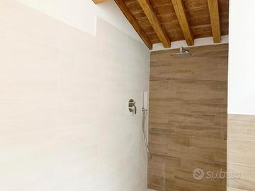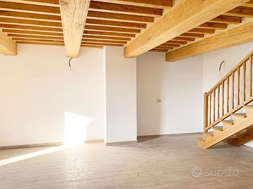 Appartamento cielo / terra completamente indipendente, FINEMENTE RISTRUTTURATO, di mq 160, con classe energetica A2, con ingresso a piano terra, così composto: ampio soggiorno open/space con angolo cottura, bagno a piano primo, due camere matrimoniali, cameretta, ampio bagno a piano secondo, oltre a lavanderia, doppio garage privato a piano terra e giardino ad uso esclusivo. OTTIME FINITURE.