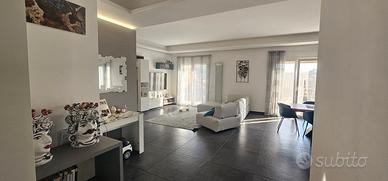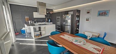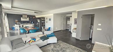 Al 3° piano di un elegante stabile, proponiamo in vendita uno straordinario appartamento di 165 mq, completamente ristrutturato con gusto contemporaneo e standard qualitativi elevatissimi. La posizione dominante regala una vista aperta e suggestiva: l'appartamento è super panoramico e inondato di luce naturale, grazie alla doppia esposizione che valorizza ogni ambiente. Il cuore della casa è l'ampia zona living open space con triplo affaccio, uno spazio scenografico dove luce e comfort si fondono in perfetto equilibrio. Ideale per ricevere e vivere momenti esclusivi. La zona notte è pensata per garantire privacy e raffinatezza: Due spaziose camere ragazzi Suite padronale con elegante bagno en suite Ulteriore bagno completo Bagno ospiti dedicato Funzionale locale lavanderia separato La ristrutturazione è totale e impeccabile: ? Impianti completamente rifatti ? Sistema domotico integrato ? Tapparelle automatizzate ? Climatizzazione in tutti gli ambienti ? Termosifoni di design ? Finiture ricercate e materiali di pregio L'arredo, incluso nella vendita, è stato selezionato con cura e si integra armoniosamente con lo stile sofisticato dell'immobile. Una residenza esclusiva, pronta da vivere, che coniuga tecnologia, eleganza e una vista impareggiabile. Completa l'immobile un comodo garage. Richiesta € 179.000,00 tratt.