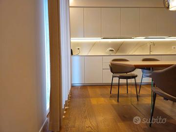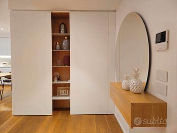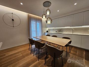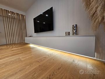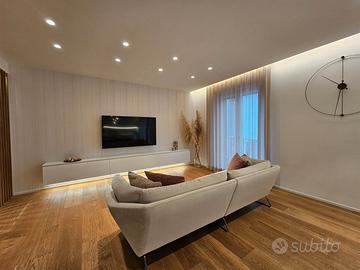 Le immagini parlano da sole: parquet in rovere naturale, boiserie bianche, tagli di luce LED integrati e un'atmosfera calda e sofisticata che abbraccia l'intera abitazione. Ogni dettaglio è una scelta d'autore, ogni materiale racconta una storia di eccellenza.