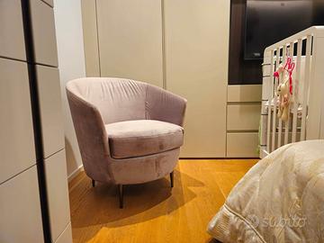 Camera matrimoniale con carta da parati d'autore, letto imbottito, illuminazione ricercata. Seconda camera elegante e versatile.