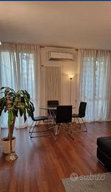 Affitto appartamento mq 70 in centro storico a Rimini, adiacente Piazza Mazzini e fuori dall'isola pedonale, vicino all'università e ai maggior punti di interesse della citta'. Con ingresso indipendente all'interno di una corte residenziale, tranquilla e videosorveglata. Disposto su due livelli dispone di: zona living con ampio divano e smart tv, cucina chiusa e separata, stanza lavanderia con lavatrice. Al 2° piano, stanza matrimoniale con cabina armadio piu' altra stanza con letto singolo e armadio, bagno nuovo con box doccia. Pavimenti in parquet, aria condizionata. Completamente arredato e dotato di stoviglie. Spazio esterno con giardino esclusivo . 1200 mensili, utenze a parte.