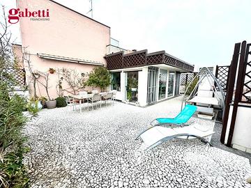 P131 - ATTICO UNICO NEL SUO GENERE - AMPIO APPARTAMENTO E TERRAZZO DI 80 MQ TUTTO SU UN LIVELLO Nel cuore di una delle aree più esclusive e ambite di Rimini, proponiamo in vendita un attico davvero unico nel suo genere, sviluppato su un intero piano e impreziosito da uno straordinario terrazzo panoramico di oltre 80 mq, perfetto per vivere appieno ogni stagione dell'anno. L'ingresso si apre su una luminosa zona giorno, dove l'ampio soggiorno dialoga armoniosamente con l'esterno grazie all'affaccio diretto sul grande terrazzo: uno spazio scenografico e riservato, ideale per cene al tramonto, momenti di relax o per accogliere amici e familiari in un contesto di assoluta privacy. La cucina, separata, garantisce funzionalità e comfort, mantenendo una piacevole distinzione tra gli ambienti. La zona notte è pensata per offrire tranquillità e benessere. Qui troviamo tre camere da letto, tra cui una camera matrimoniale dotata di cabina armadio, oltre a due bagni finestrati, curati nei dettagli e caratterizzati da finiture eleganti e moderne. L'attico si presenta in ottime condizioni, parzialmente arredato e valorizzato da materiali contemporanei e ambienti accoglienti, pronti da vivere. Completano la proprietà logge e balconi che ampliano ulteriormente gli spazi esterni, due garage al piano terra e un posto auto esterno. Possibilità di acquistare l'immobile con un solo garage. Una soluzione esclusiva, pensata per chi desidera un'abitazione di rappresentanza, con ampi spazi all'aperto e il privilegio di un intero piano dedicato alla propria privacy.