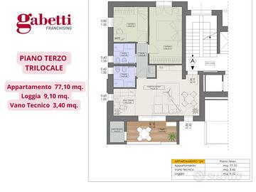 T817 - Rimini - Zona Costellazioni - In vendita un esclusivo appartamento al piano terzo, di prossima realizzazione, situato nella tranquilla e ricercata zona Costellazioni di Rimini. Con una superficie di circa 77 mq, questo immobile è progettato per offrire il massimo del comfort, della sostenibilità e del risparmio energetico, grazie all'impiego di tecnologie costruttive di ultima generazione e materiali di alta qualità, garantendo ottime performance in termini di efficienza energetica. L'appartamento si compone di una spaziosa zona giorno con angolo cottura, una camera matrimoniale, una camera singola, un comodo disimpegno e due bagni entrambi finestrati. La zona giorno sfocia su una loggia di oltre 9 mq. uno spazio indispensabile per vivere l'esterno. La palazzina, moderna e progettata con un'attenzione particolare al comfort, è dotata di una serie di impianti e soluzioni innovative, tra cui cappotto termico per un perfetto isolamento termico, isolamento acustico per il massimo del silenzio, riscaldamento autonomo con pannelli radianti alimentati da pompa di calore, termostato con gestione da remoto, impianto di ventilazione meccanica, impianto fotovoltaico per la produzione di energia rinnovabile, videocitofono, tapparelle elettriche, termoarredo del bagno con alimentazione elettrica, porte basculanti dei garage con apertura e chiusura motorizzata e una linea elettrica dedicata per l'eventuale installazione di una colonnina di ricarica elettrica per auto. La consegna dell'appartamento è prevista per la fine del 2027, offrendo così l'opportunità di acquistare un immobile in fase di realizzazione con la possibilità di personalizzarlo in base ai propri gusti e alle proprie esigenze. Inoltre, sono disponibili garage di diverse metrature per una maggiore comodità e sicurezza. Sono previste agevolazioni fiscali per l'acquisto dell'immobile, rendendo questa proposta ancora più vantaggiosa. Non perdere l'opportunità di acquistare un