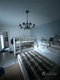 Zona giorno accogliente con soggiorno, divano, poltrona e TV. Cucina completa con tinello e tavolo da pranzo per 4/6 persone. Bagno con doccia e finiture in pietra viva. Camera unica ma molto comoda con letto matrimoniale e letto a castello, ideale per famiglie o gruppi di amici.
