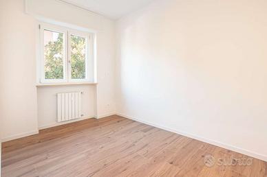 L'intervento di totale ristrutturazione ha previsto una nuova e più razionale disposizione degli spazi, la sostituzione degli infissi , il cambio dei cassonetti e la messa in posa di taparelle motorizzate. Sono state sostituite tutte le porte interne e la porta di ingresso blindata. Nuovo impianto idraulico nei due bagni e nuovo impianto elettrico con linea induzione dedicata. Ribassamento in cartongesso all'ingresso, in cucina , in soggiorno e nel corridoio con illuminazione a faretti e strisce led.