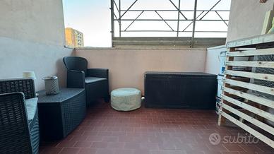 L'immobile è composto da: cucina/soggiorno open space con veranda regolarmente condonata, terrazza abitabile, due camere matrimoniali, bagno con doccia e finestra, ripostiglio.