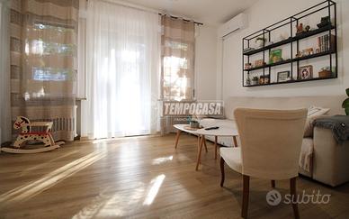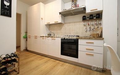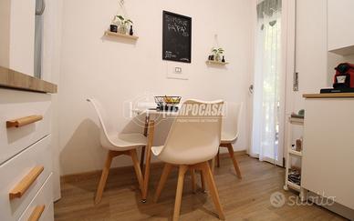 CARATTERISTICHE INTERNE: L'appartamento è composto da un ingresso in disimpegno, cucina abitabile con balcone, ampio soggiorno con balcone, due camere da letto matrimoniali e un bagno con vasca. L'immobile è stato ristrutturato nel 2020, infissi in PVC interno effetto legno con zanzariere, porte bianche, pavimentazione in SPC vinile, climatizzazione con due split con pompa di calore, predisposizione lavatrice in cucina, impianto gas certificato.