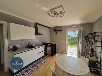 Proponiamo splendido appartamento appena ristrutturato, con doppio giardino in zona centrale a Gradisca d'Isonzo. Piano terra di circa 50 mq composto da: - soggiorno/cucina - camera matrimoniale - camera singola - bagno finestrato - doppio giardino da 35 mq ciascuno. Piano interrato di circa 22 mq composto da: - stanza - lavanderia - ripostiglio Ristrutturato nel 2024 con infissi a triplo vetro con zanzariere e persiane avvolgibili elettricamente. Riscaldamento autonomo con caldaia a condensazione del 2024 e radiatori in alluminio. Doppio climatizzatore ad inverter (caldo/freddo) da 9000 btu ciascuno. Provvisto già di impianto centralizzato di irrigazione per il giardino. Posto auto scoperto di proprietà. Completo di arredo! Ottima opportunità anche per eventuale attività di affitti turistici. Riferimento: 2025058 C.E.: In fase di definizione