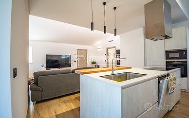 Appena varcata la soglia, si viene accolti da un'ampia zona giorno open space dove soggiorno e cucina si fondono armoniosamente in un ambiente raffinato, impreziosito dalla luce naturale che filtra dalle grandi vetrate e dall'accesso diretto al balcone: lo spazio perfetto per chi ama ricevere o semplicemente rilassarsi in famiglia.