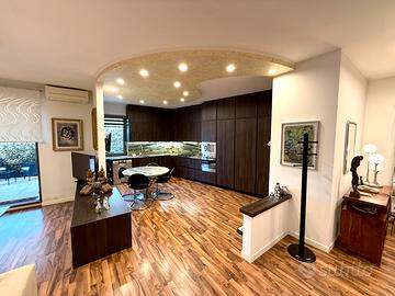 Appartamento ristrutturato con finiture di pregio e ampio spazio esterno vivibile In elegante contesto residenziale, proponiamo in vendita un appartamento moderno e raffinato, completamente ristrutturato e curato nei minimi dettagli. L'ingresso conduce a una luminosa zona giorno open space composta da salone doppio e cucina di design con arredi su misura e top in marmo pregiato irish green. Grandi vetrate donano luce naturale agli ambienti e si affacciano sul giardino pavimentato privato, perfetto per cene all'aperto e momenti di relax grazie alla presenza di barbecue e area conviviale. La zona notte si compone di due ampie camere matrimoniali, un elegante bagno rivestito in marmo bianco di carrara e un pratico disimpegno attrezzato con armadiature e ripostiglio. ? Caratteristiche principali: oRistrutturato con materiali di pregio (marmo cucina irish green, marmo bianco di carrara nel bagno) oPavimenti in parquet in noce ad alto passaggio in tutta la casa oCucina su misura con elettrodomestici di ultima generazione o Impianto di illuminazione a faretti LED oAria condizionata in ogni ambiente o Spazio esterno privato con barbecue o Ripostiglio e armadiature integrate oimpianto dall'arme professionale oinosonorizzazione muro confinate ocappotto parziale nel lato meno esposto al sole Soluzione ideale per chi cerca un'abitazione pronta da abitare, elegante e funzionale, in una posizione strategica servita da scuole, mezzi e attività commerciali. Appartamento 110mq + 70mq di terrazza Appartamento chiavi in mano, vivibile già dal giorno seguente! In alcune foto si possono notare delle imperfezioni nei muri (vedi foto all'esterno), sono già state ripristinate pari al nuovo.