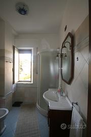 Ristrutturato con finiture interne completamente rinnovate. Vi si accede da androne e scala comune coperta. L'atrio d'ingresso distribuisce i vari ambienti della casa: a sinistra due porte servono l'ampio soggiorno con terrazzo coperto sulla via pubblica e la zona cucina aperta sul soggiorno; a destra le due camere, di cui una matrimoniale, con terrazzo coperto comune che si affaccia sui garage e sul verde retrostante; al centro, in asse con l'ingresso, ampio bagno e adiacente lavanderia (predisposta per eventuale secondo bagno). Il garage è anch'esso ristrutturato, pavimentato e con porta nuova.