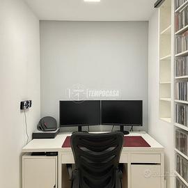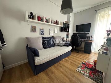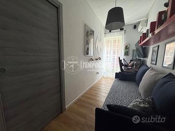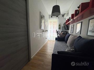 L'immobile si apre su un ampio e luminosissimo salone con cucina a vista, caratterizzato da un accesso diretto a una spaziosa balconata che conferisce grande ariosità agli ambienti. La zona notte comprende due camerette, entrambe dotate di punto luce, e una camera padronale particolarmente confortevole, completa di cabina armadio, studio privato e bagno dedicato.