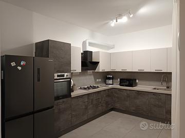 Vendesi appartamento al primo piano di una palazzina composta da piano terra e piano primo, nelle immediate vicinanze si trovano panificio, supermercati, scuole e farmacie. completamente ristrutturato nel 2024 compreso impianto idrico, elettrico con predisposizione impianto di allarme a filo. Si accede tramite scala esterna che lo rende simile ad un appartanvilla. Superficie di 102 mq, si sviluppa all' ingresso su ampio open space con cucina a vista fatta su misura, lavastoviglie Electrolux incassata, forno pirolitico Candy e cappa con aspirazione. Il soggiorno comprende grande divano con penisola, parete attrezzata con predisposizione per installare una TV di 65 pollici. Presenti luci led wifi per illuminazione parete attrezzata e cucina mediante comandi vocali Alexa. Tavolo a 6 posti allungabile e 6 sedie. Due bagni, uno adibito a lavanderia con incavo per asciugatrice e lavatrice, wc e mobile bagno. Il bagno principale si presenta con ampio piatto doccia, wc, mobile bagno, e soffitto in cartongesso con faretti. Camera per bambini, ampia camera da letto arredata con armadio a due ante scorrevoli, comò, due comodini e letto contenitore matrimoniale con materasso in Memory altezza 30 cm. L'immobile è termonomo, caldaia a condensazione Unical che alimenta l'impianto di riscaldamento fancoil, sono inoltre presenti tre climatizzatori. A completare l'efficienza dell' immobile con classe C troviamo infissi doppio taglio termico con ante ad apertura vasistas, e inferriate. Esternamente troviamo due balconi con terrazzino davanti la cucina, illuminati da faretti con pannello solare. Posti auto liberi all' interno del condominio. Vendesi arredato dei mobili fissi (Cucina con lavastoviglie e forno pirolitico, Parete attrezzata, Divano, Tavolo e Sedie, Camera da letto, Arredo Bagno) "Ad esclusione degli elettrodomestici di libera installazione: TV, lavatrice, asciugatrice, frigorifero". Prezzo arredato 188000 €. non arredato 180000 € non trattabili. No agenzie.