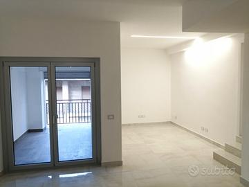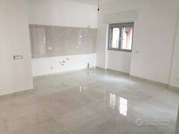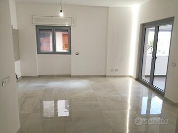 VENDESI appartamento integralmente ristrutturato (ottobre 2025) di 103 mq circa calpestabili, così composto: soggiorno-cucina open space, veranda, tre camere da letto (matrimoniale e due singole), due bagni (completi), più box auto autonomo di mq 20. Capitolato: infissi in PVC - effetto argento; pavimento levigato in gres porcellanato prima scelta (made in Italy), tapparelle elettriche in tutti gli ambienti, porte nuove effetto legno con inserto in alluminio, rivestimenti bagno gres prima scelta. L'appartamento è full electric (no gas) con: predisposizione cucina a induzione, impianto centralizzato di riscaldamento, raffrescamento e deumidificazione in pompa di calore e inverter. Impianto acqua calda separato in pompa di calore classe A+. Doppia presa TV in ogni stanza, illuminazione a led su ingresso e zona soggiorno. Tutti gli impianti sono stati rifatti, certificati e conformi, impianto di videosorveglianza esterno (su ogni lato). Predisposizione per impianti allarme e fotovoltaico. L'appartamento, in piano rialzato, è ubicato in un piccolo contesto condominiale di sole cinque unita' immobiliari, è molto luminoso, è in zona centrale ( zona mercato) con facilita' di parcheggio, attività commerciali, scuole, ecc.