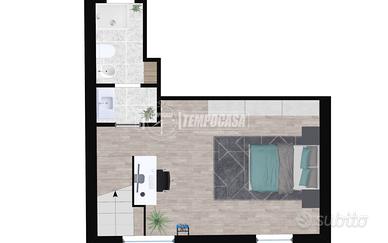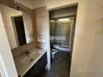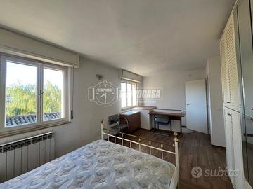 Al piano superiore si trova la zona notte, con una spaziosa camera da letto matrimoniale e un bagno finestrato con finiture moderne.