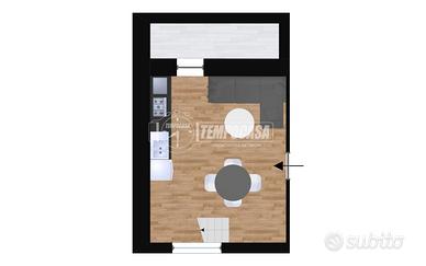Al piano terra si sviluppa la zona giorno, composta da un accogliente soggiorno con cucina a vista in open space, arricchita da un pratico ripostiglio sottoscala.