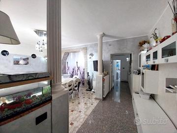 Proponiamo in vendita ad Acquappesa (CS), precisamente sul lungomare di Intavolata, sul mare (a soli 50 mt), appartamento completamente ristrutturato (infissi in alluminio, portoncino blindato, riscaldamento autonomo con caldaia ed elementi etc.) posto al primo piano di una palazzina. L'immobile, di circa 100 mq, è composto da: salone all'americana con ampio ripostiglio, due camere, cucina con spettacolare vista mare, bagno, terrazzino, cantina condominiale e posto auto condominiale.
