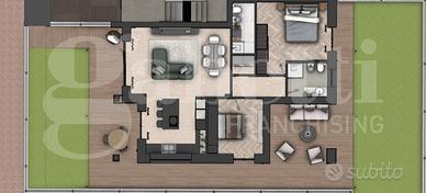 In stabile signorile di nuova realizzazione denominato Residenza "CASA ARTEMIDE" di fronte al parco del Sangone, a due passi dai servizi del Centro ed alle piste ciclabili, immerso in un oasi di pace e tranquillità, GABETTI RIVALTA propone in esclusiva la vendita di 4 appartamenti in classe energetica A4 con riscaldamento autonomo. Il condominio sarà composto da due appartamenti per piano e gli appartamenti sono del tutto personalizzabili sia negli spazi interni che nella scelta dei materiali visto il capitolato di pregio. L'appartamento in questione è un quadrilocale angolare con giardino composto da: ingresso living su ampio soggiorno e cucina a vista abitabile, entrambi gli ambienti si affacciano su giardino di 90 mq contornato da una zona pavimentata su cui si può comodamente realizzare un salottino estivo; tramite un disimpegno dalla zona giorno si accede alla zona notte che ospita due camere da letto di cui una con bagno interno, un secondo bagno, ripostiglio e terrazzo coperto di circa 11 mq.