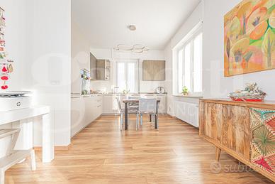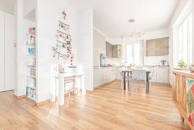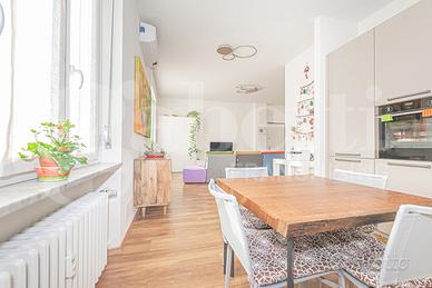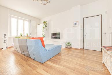Grazie alla recente ristrutturazione sono stati sfruttati al meglio gli spazi interni creando un living su soggiorno ed una cucina a vista dove è stata posizionata una funzionale parete attrezzata completa di elettrodomestici. Le grandi finestre ben illuminano gli ambienti. Il disimpegno separa la zona giorno dalla zona notte dove troviamo una camera da letto spaziosa con accesso ad un primo bagno finestrato e completo di sanitari e doccia. All'appartamento si aggiunge un secondo bagno completo.