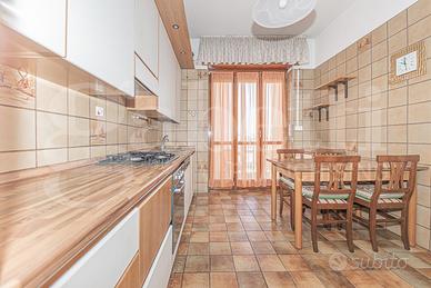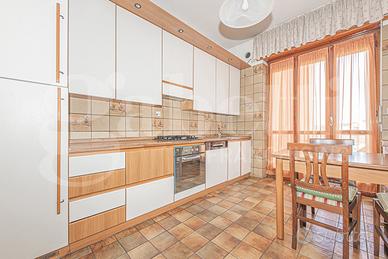 La soluzione abitativa è composta da una cucina abitabile, tre camere da letto con parquet, un bagno con doccia e spazio per la lavatrice. Le camere da letto sono caratterizzate da un elegante pavimento in parquet, mentre il riscaldamento è centralizzato per un comfort ottimale in ogni stagione.