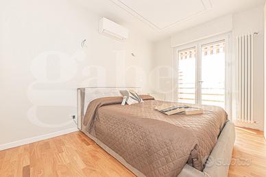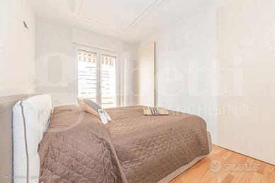 In stabile degli anni '80 posto al quinto piano con ascensore, per un accesso comodo e veloce. L'appartamento è stato recentemente ristrutturato in stile moderno ed offre un'atmosfera accogliente, ideale per chi cerca comfort e funzionalità per una piacevole vita quotidiana. Living su ampia zona giorno ben illuminata da uno dei due comodi balconi. La cucina abitabile è ideale per preparare deliziose pietanze da gustare in compagnia. La cabina armadio con ante scorrevoli nella camera padronale, conferisce un tocco di eleganza e praticità a questo immobile. La seconda camera è facilmente arredabile ideale per una famiglia per garantisce spazio ai ragazzi o realizzare uno studio.