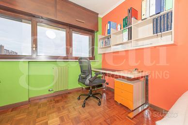La Gabetti di Rivoli propone in vendita in zona comoda ai servizi e con molti spazi verdi, quadrilocale al quinto piano di uno stabile costruito negli anni '90. L'immobile è così composto :