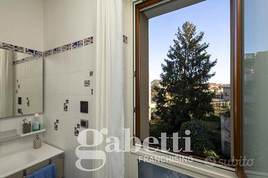 APPARTAMENTO DI PREGIO IN VENDITA - RIVOLI, PARC MUSINE' - VIA MONTENERO 4 All'interno del prestigioso complesso residenziale Parc Musinè, composto da quattro palazzine immerse nel verde, proponiamo in vendita elegante appartamento di 155 mq, situato nella palazzina B, al secondo piano di uno stabile servito da ascensore fino al piano interrato. L'alloggio è internamente così composto: ingresso sull'ampio salone, cucina abitabile, quattro camere (di cui una adibita a studio), due bagni (di cui uno cieco), ripostiglio, oltre al terzo bagno adibito a lavanderia e bagno per ospiti. Due balconi profondi. Tripla esposizione con affaccio panoramico su parco e montagne, che garantisce luminosità durante tutto l'arco della giornata. Ristrutturato completamente nel 2015: - Coibentazione orizzontale e verticale con cappotto termico - Serramenti in legno douglas massello con doppi vetri e taglio termico - Coibentazione cassonetti - Interventi antisismici - Zona giorno con pavimenti in marmo bianco arabescato - Zona notte con parquet in legno di faggio Margaritelli - Porta blindata Efficientamento energetico già eseguito (Superbonus 110%): - Impianto fotovoltaico - Domotica impianto riscaldamento - Contabilizzazione acqua calda e fredda - Ascensore rinnovato - Autorimesse con portoni automatici - Percorsi condominiali adeguati per disabili Classe Energetica A2 Riscaldamento centralizzato con valvole termostatiche (quota fissa 30%). Caldaia a condensazione installata nel 2011. Gli importanti interventi eseguiti sull'immobile consentono oggi di beneficiare di spese di riscaldamento estremamente contenute, pari a circa 890 euro all'anno. Completa la proprietà: Cantina al piano interrato. Posto auto coperto con colonnina elettrica ad euro 25.000. Dotazioni: - Fibra ottica - Impianto TV satellitare - Impianto di allarme volumetrico - Videocitofono - Cancello elettrico In zona comoda ai servizi, immersa nella tranquillità, ma ben c