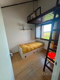 Si compone di un salottino con portafinestra sul balconcino, camino e stufa a pellet, tv, angolo cottura con finestra; un piccolo disimpegno separa zona notte da quella giorno; un bagno con doccia interamente ristrutturato; due camere da letto (una matrimoniale ed un'altra con due letti singoli, di cui uno a castello).