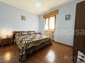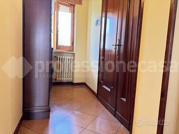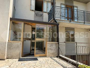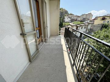 L'immobile, già arredato, dispone di ingresso, un soggiorno con camino e balcone, una cucina abitabile, tre camere da letto e due bagni. Gode altresì di una vista panoramica sul paese e sulle montagne circostanti. Troviamo inoltre un bel giardino condominiale dove condividere momenti all'aria aperta.