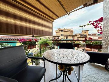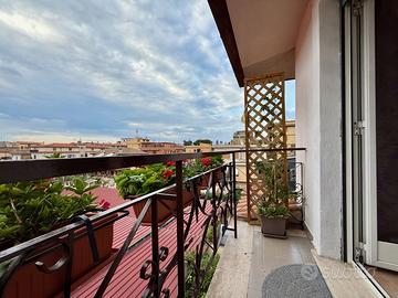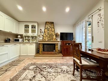 L'immobile è composto da ampio ingresso, salone con angolo cottura e camino, camera matrimoniale, cameretta, servizio con doccia, ripostiglio, due balconi e un terrazzino. In buone condizioni è dotato di pavimenti in ceramica, finestre in alluminio con tapparelle in PVC, riscaldamento autonomo.