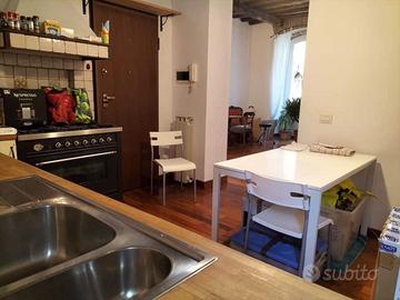 L'appartamento è sito al primo piano, è di circa 90 mq ed è composto da doppio ingresso con due porte blindate, salone doppio con travi a vista, cucina abitabile, camera da letto matrimoniale, doppi servizi con doccia, un grazioso terrazzino ed è tra l'altro facilmente trasformabile in un trilocale, riducendo l'ampiezza del salone per creare la seconda camera.
