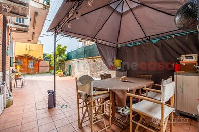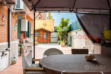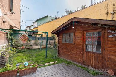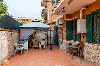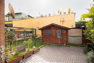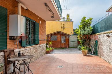 PONTE MAMMOLO - Appartamento al piano terra composto da: salone con angolo cottura su misura, camera da letto con soppalco, cameretta, bagno finestrato e giardino perimetrale in parte mattonato di 114 mq. Dotato di grate, zanzariere e condizionatori. A soli 800 metri dalla Metro B ( fermata Rebibbia ) e a pochi passi da tutti i servizi principali come bar, palestre, scuole, supermercati, posta e farmacia.