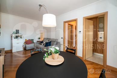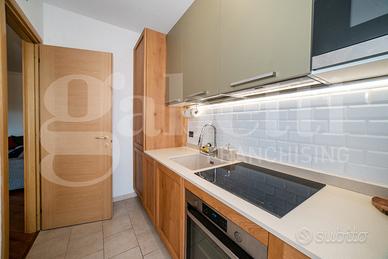 All'interno, ambienti luminosi e finiture di pregio creano un'atmosfera moderna e accogliente. L'immobile si compone di un ampio soggiorno con cucina separata, mentre la zona notte comprende una camera matrimoniale con accesso diretto al terrazzo, una seconda camera ideale come studio o cameretta e due bagni raffinati, uno con vasca idromassaggio e uno con doccia.