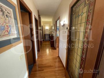 Eur Tintoretto - Largo Valerio Bacigalupo - Nelle immediate vicinanze di via Baldovinetti e del centro commerciale I Granai, in comprensorio con un curatissimo giardino condominiale ed ampi spazi verdi, proponiamo in locazione un appartamento completamente arredato sito al quinto piano, composto da ingresso, ampio salone con zona pranzo, cucina abitabile con uscita su loggia esterna, tre camere da letto, cabina armadio e due bagni. L'immobile dispone di aria condizionata e riscaldamento autonomo. Completa la proprietà un posto auto coperto nel garage di 23 mq.