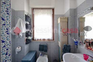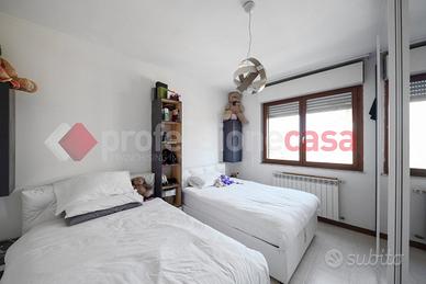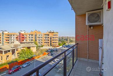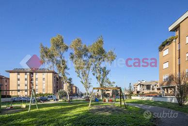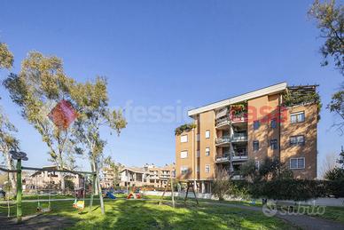MURATELLA. L'Agenzia Professionecasa Bravetta Pisana propone in via Generale Giuseppe Valle, a pochi minuti dall'Aeroporto di Roma-Fiumicino " Leonardo da Vinci", a breve distanza dalla Stazione Metropolitana Muratella (FS-FL1 Roma-Fiumicino), uno splendido Trilocale di 90 mq, posto al terzo piano, in un piccolo comprensorio con parco giochi per bambini, edificato nel 2005. L'immobile, si presenta in ottime condizioni, così composto: soggiorno a vista, cucina, terrazzino, disimpegno, due camere da letto matrimoniali, balcone e due bagni entrambi con finestra. Le caratteristiche predominanti di questa interessante soluzione sono: il portoncino blindato, l'impianto di riscaldamento autonomo, il climatizzatore a pompa di calore, gli infissi in legno con vetrocamera a taglio termico dotati di zanzariere, la pavimentazione totalmente rivestita in gres porcellanato. E' presente l'impianto fotovoltaico con pannello solare termico. Completa la proprietà una ampia cantina ed un comodo posto auto coperto che ricade come collocazione fisica, sotto la porzione abitativa in oggetto, raggiungibile tramite ascensore. Il condominio in cui è posizionato è riservato e silenzioso. Nelle immediate vicinanze troviamo tutti i servizi di maggior utilizzo come scuole, farmacia. La vicinanza alla via Portuense, permette di raggiungere in pochi minuti il centro di Roma. Le presenti informazioni, immagini e planimetrie sono puramente indicative e non costituiscono elementi contrattuali.