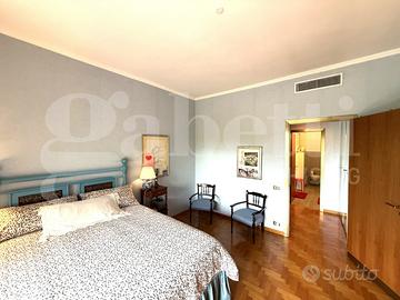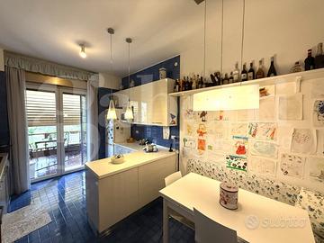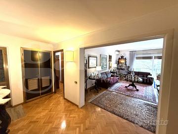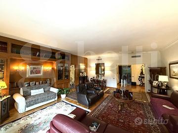 L'immobile presenta pavimenti in parquet, ceramiche nei bagni e cucina, armadiature a muro, infissi nuovi alluminio doppio vetro, serrande in pvc, tende da sole, impianto centralizzato di riscaldamento e raffrescamento, porta blindata e impianto di allarme.