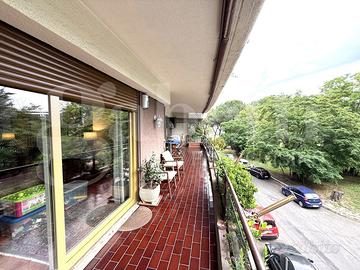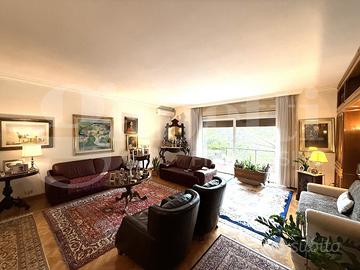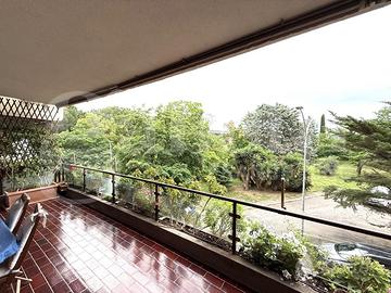 Eur Tintoretto - Via Andrea del Castagno, in prestigioso complesso residenziale con curatissimo parco interno condominiale, servizio di portineria e guardiania h24, piscina, solarium, campi da tennis e club house, proponiamo la vendita di un elegante appartamento sito al secondo piano con vista esterna, composto da ampio ingresso, salone doppio, cucina abitabile con tinello-pranzo, camera padronale con bagno en suite, altra camera matrimoniale, bagno, camera studio con bagno annesso, ripostiglio ed ampio terrazzo vivibile. Completa la proprietà un posto auto coperto.