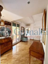 SAN PIETRO - Via Monte del Gallo, in caratteristica palazzina senza ascensore, l'agenzia Grimaldi S. Pietro propone la vendita di un luminoso trilocale con terrazzo. L'immobile si compone di salone, cucina abitabile, due camere matrimoniali, bagno con doccia, soppalco, balcone e terrazzo di c.a 20 mq con forno . Alcune caratteristiche : portone blindato, infissi con doppi vetri, pavimento in parquet, caldaia a gas per riscaldamento ed acqua calda, aria condizionata. Buone condizioni, tripla esposizione . Terrazzo condominiale ad uso dei condomini.