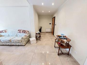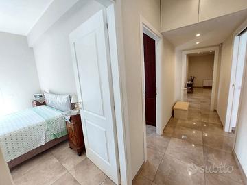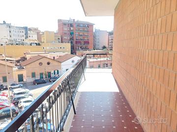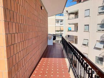 L'appartamento è composto da un ampio ingresso, salone, 2 camere, cucina abitabile , servizio , ripostiglio e balcone vivibile ad angolo di 18 mq ca.