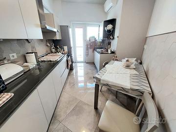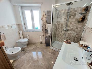 Internamente l'immobile è stato totalmente e finemente ristrutturato da circa 6 anni, si presenta con ottime rifiniture quali, infissi in pvc con doppio vetro, , zanzariere, videocitofono, porta blindata , condizionatori, impianto elettrico ed idraulico, pavimenti gress porcellanato, impianto di allarme, controsoffitto con faretti . L' esposizione è ottima, completamente aperta e angolare (est- nord/ovest) per cui è assolata per tutto l' arco della giornata.