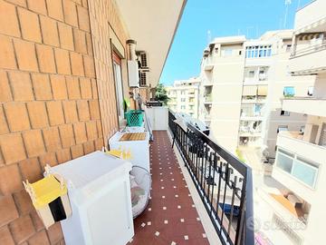 L'appartamento è composto da un ampio ingresso, salone, 2 camere, cucina abitabile , servizio , ripostiglio e balcone vivibile ad angolo di 18 mq ca.