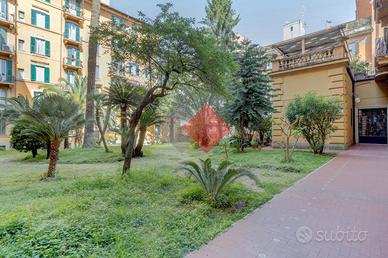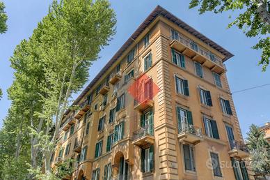 Entrando e proseguendo, il corridoio d'ingresso si aprirà su un luminoso soggiorno con angolo cottura e con affaccio su Viale Regina Margherita. Andando avanti troveremo, di fronte, la porta che darà accesso ad un comodo servizio, completo di tutti gli arredi rivestito in piastrelle di ceramica smaltata, e ad una camera da letto matrimoniale, anch'essa con affaccio su Viale Regina Margherita. Completerà la soluzione una comoda zona lavanderia.
