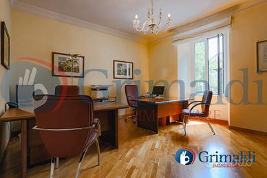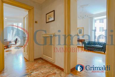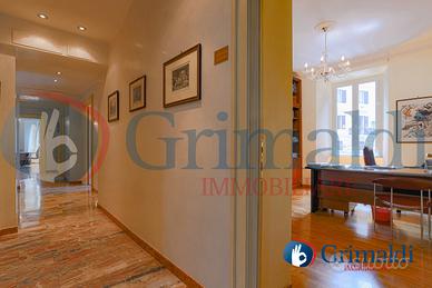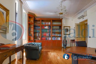 C'è una piazza nel cuore del quartiere Prati, forse una tra le più importanti di Roma, dedicata allo statista piemontese Camillo Benso, Conte di Cavour. Questo luogo, che ora si chiama Piazza Cavour, è anche noto perché ci si affacciano la chiesa Evangelica Valdese, il Palazzo De Parente di Gaetano Koch, il Cinema Adriano e anche un lato del Palazzaccio, imponente opera dell'architetto Guglielmo Calderini realizzata negli anni 1889-1910 e sede della Suprema Corte di Cassazione. Questa piazza è importante anche a livello logistico, in quanto a pochi passi dalla stessa si trovano due ponti che collegano il quartiere Prati con il centro storico, nonché importanti strade di collegamento come Via Crescenzio, Via Cicerone e Via Vittoria Colonna. A ridosso della piazza troviamo una via che la collega con Piazza della Libertà (Via Cola di Rienzo). Ed è proprio in questa interessante e strategica strada che l'agenzia immobiliare Grimaldi Roma Prati è lieta di proporVi un'appartamento di un'ampia metratura, sito in uno stabile signorile dotato di servizio di portineria l'intera giornata, ubicato al primo piano, che si sviluppa su una superficie catastale di 204 mq. Questa dimora è composta da ampio ingresso, sei camere spaziose, una cucina attualmente adibita a camera, due bagni e terrazzino. L'appartamento gode di un'esposizione sia interna che esterna angolare, garantendo una distribuzione ottimale della luce naturale e una gradevole vivibilità, donando ad ogni ambiente un'atmosfera elegante e armoniosa. Nel momento in cui si accede, ci accoglie un ampio ingresso che funge da accogliente reception, e già si percepisce con quale sobrietà ed eleganza è stata ristrutturata questa proprietà. Subito a sinistra, andando in senso orario, troviamo la prima camera. A ridosso di questo primo ambiente, troviamo una zona che può essere adibita a salone o sala riunioni, che ha la peculiarità di avere due finestre angolari ed un ottimo riscontro di luce e di aria. Da qui