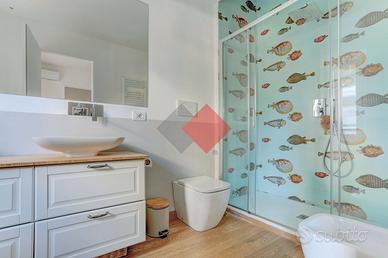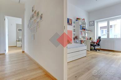 La zona notte è composta da tre camere da letto, di cui una spaziosa matrimoniale, e doppi servizi, entrambi moderni e ben rifiniti.