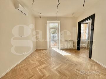 Nell'immobile è stata appena ultimata una ristrutturazione totale da zero con utilizzo di pregevoli finiture che hanno conferito uno charme moderno dal gusto raffinato: la pavimentazione è realizzata in parquet in rovere, mentre nei servizi si è scelto un rivestimento in gres effetto marmo; in fase progettuale particolare attenzione è