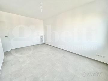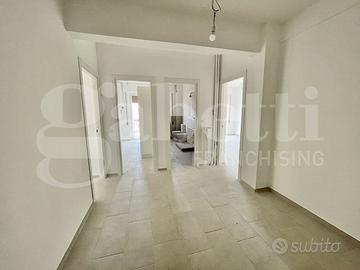 accedendo si è subito accolti in un ampio e funzionale ingresso; la zona giorno è completata da uno spazioso soggiorno che può ospitare al suo interno sia la zona salotto che la zona pranzo e dal quale si accede all'ampio balcone da cui è possibile godere di una suggestiva vista di splendidi tramoti sul Gazometro.