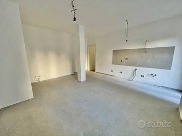accedendo si è subito accolti in un ampio salone doppio con cucina a vista, che può ospitare al suo interno sia la zona salotto che la zona pranzo e dal quale si accede al comodo balcone.